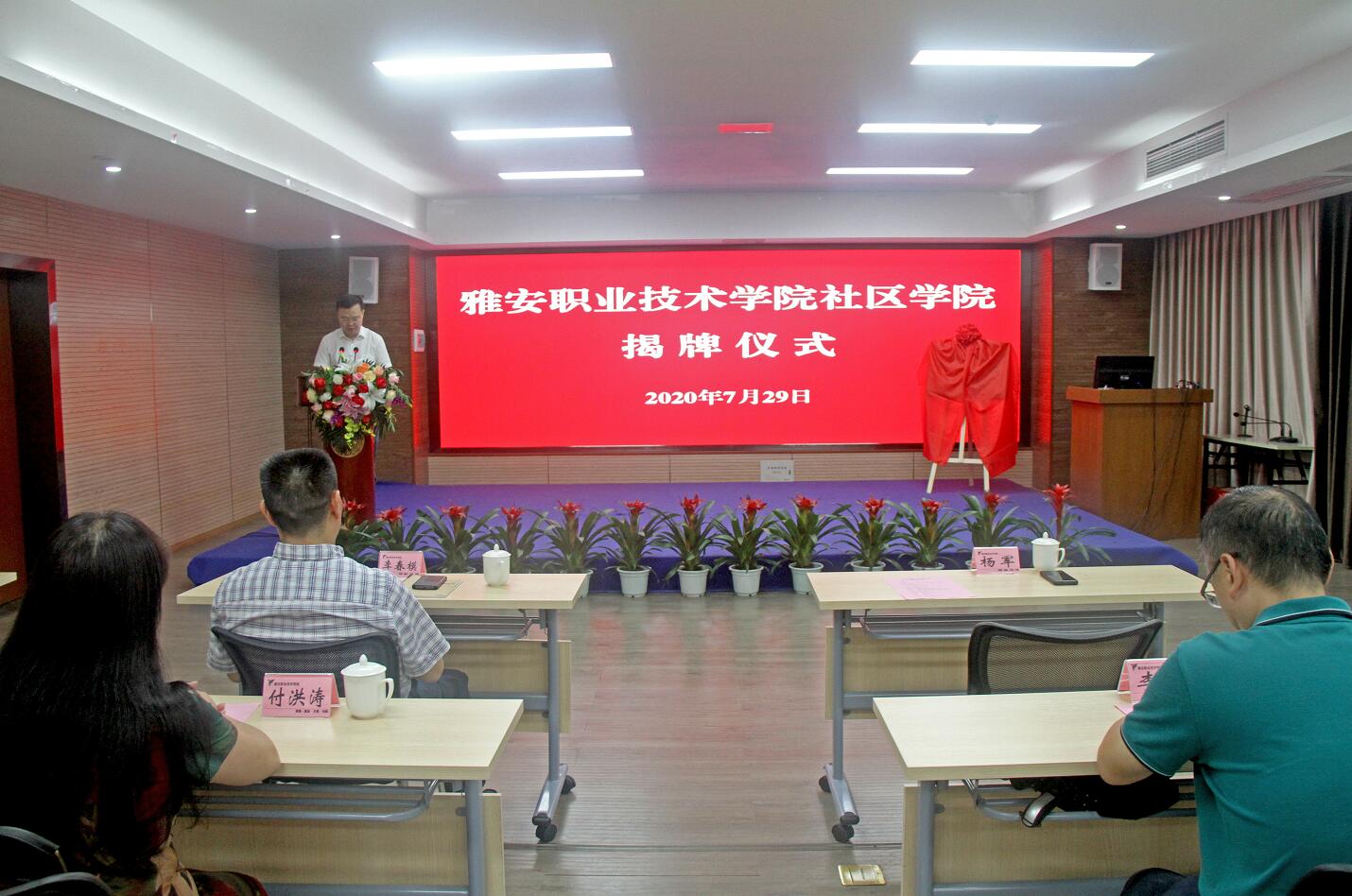 7月29日,学院社区学院揭牌仪式在青年路校区培训中心集雅厅举行,市委常委、宣传部部长杨军,市文明办副主任李祥,雨城区委副书记李健强,学院党委书记李春模,党委副书记、院长石静,党委副书记付洪涛,副院长樊正康参加揭牌仪式。揭牌仪式由石静主持。
