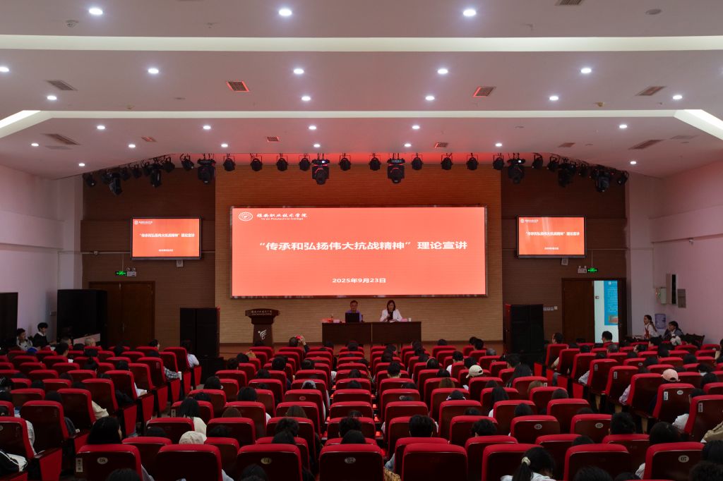为纪念中国人民抗日战争暨世界反法西斯战争胜利80周年,进一步传承红色基因、弘扬爱国主义精神,9月23日下午,学校在青年路校区举办"传承和弘扬伟大抗战精神"理论宣讲活动。活动特邀中国作家协会会员、原雅安市融媒体中心高级记者、著名文化学者高富华老师作专题宣讲。全校师生代表共计300余人参加。学校党委副书记杨洪媛主持活动。