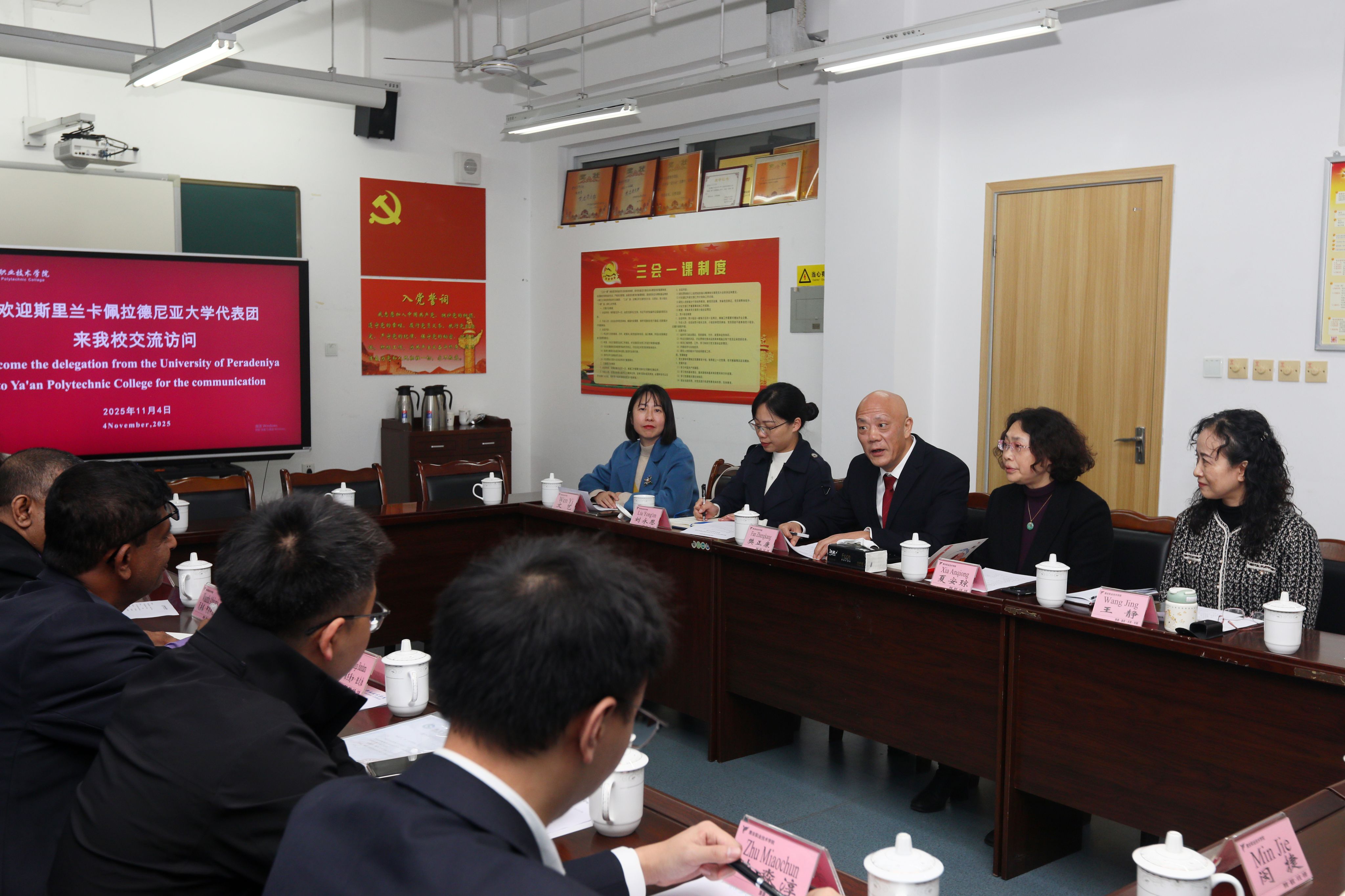 11月4日下午,斯里兰卡佩拉德尼亚大学人文与社会科学研究生院院长瓦桑塔·阿图科拉拉(Wasantha Athukorala)率团回访我校。学校党委常委、副校长樊正康,党委常委、宣传统战部部长、工会主席夏安琼,党委常委、组织部部长、人事处处长刘永恩出席交流会议。继续教育与国际交流处、招生就业处及护理学院负责人参与座谈。
